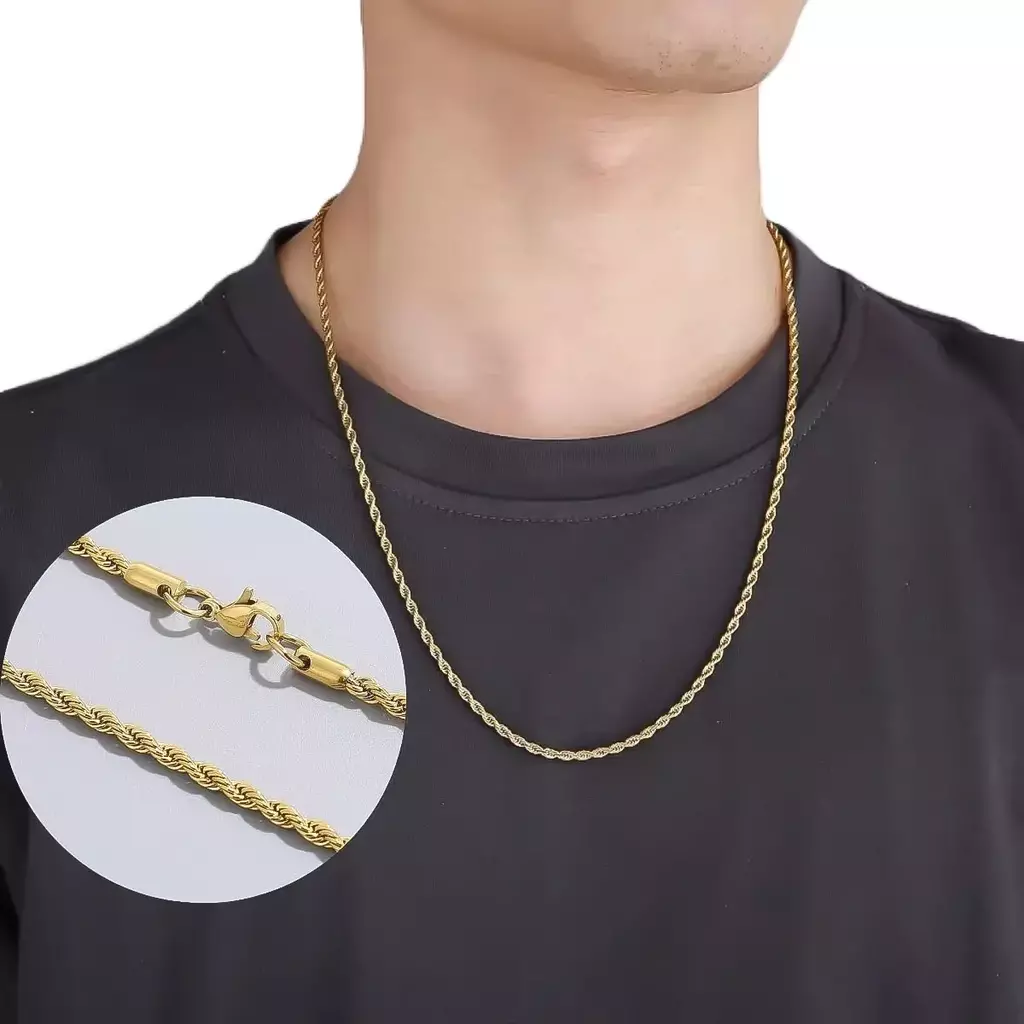Um acessório que une força, estilo e sofisticação. O Colar Baiano Dourado em Aço Inox legítimo é perfeito para homens que buscam presença marcante e elegância em todos os momentos.