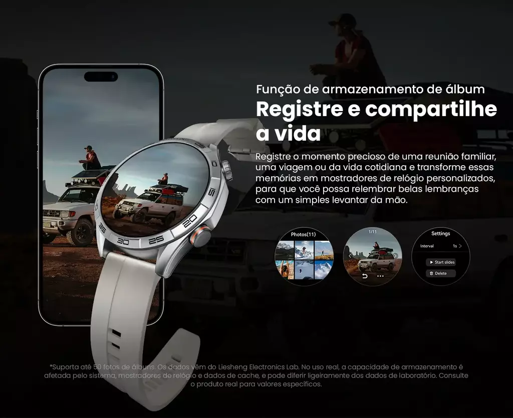 Função de Álbum: Suporta armazenamento de até 50 fotos para personalizar mostradores