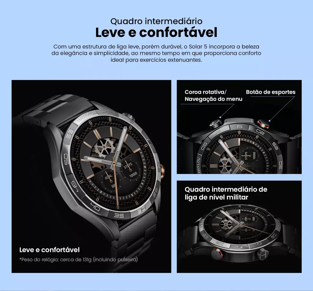 O Haylou Solar 5 é um smartwatch avançado que combina design moderno com recursos de ponta, oferecendo uma experiência completa para usuários que buscam desempenho, estilo e funcionalidade em um único dispositivo.